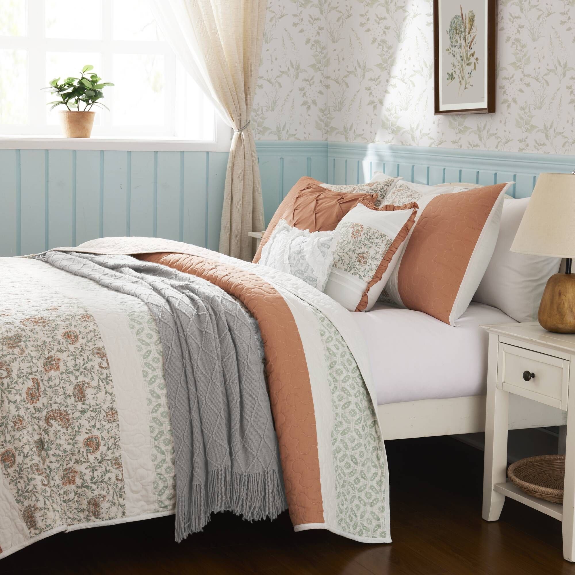 Cottage and shabby chic 6 piece quilted quilt set