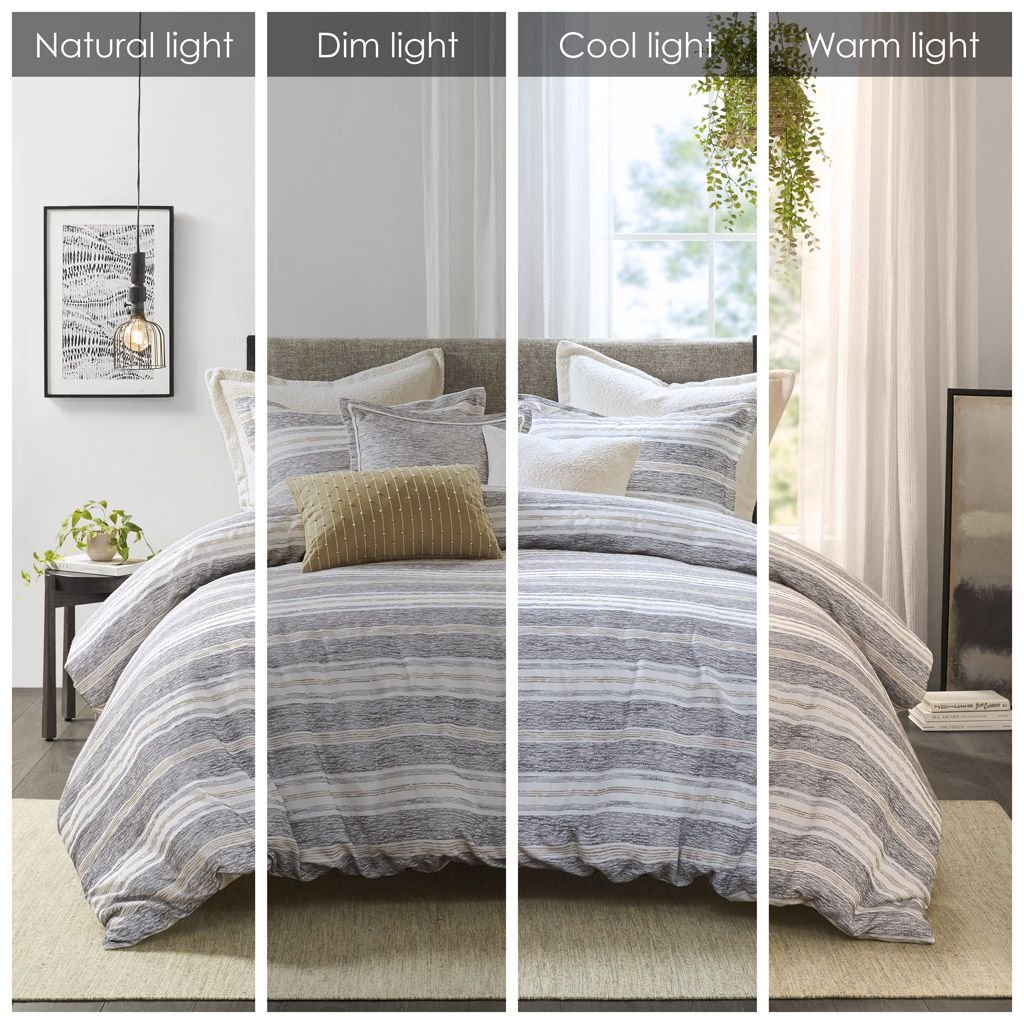 Casual textured chenille jacquard stripe design gives the bed texture and dimension