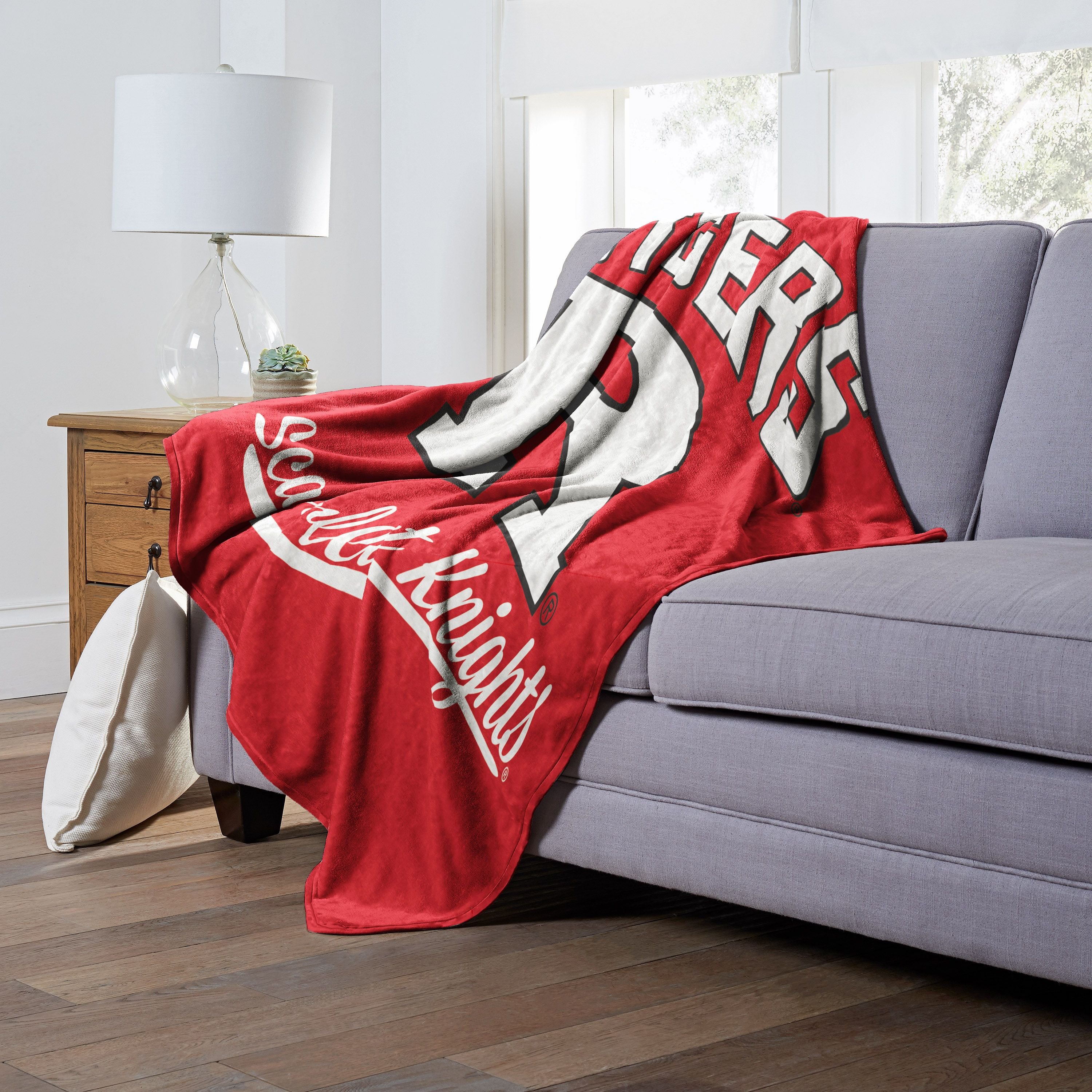 Proudly show off your alma mater or the school you love to root for with this Officially Licensed NCAA "Alumni" Silk Touch Throw Blanket by TheNorthwest. This cozy throw blanket is the perfect game day accessory. This 50"x 60" silky-soft throw blanket is perfect for keeping warm at the game, using on a picnic, or cuddling under on your couch. It boldly features a retro school logo in the center, surrounded by the team name, on a solid color background. This throw has a neutral color backside.