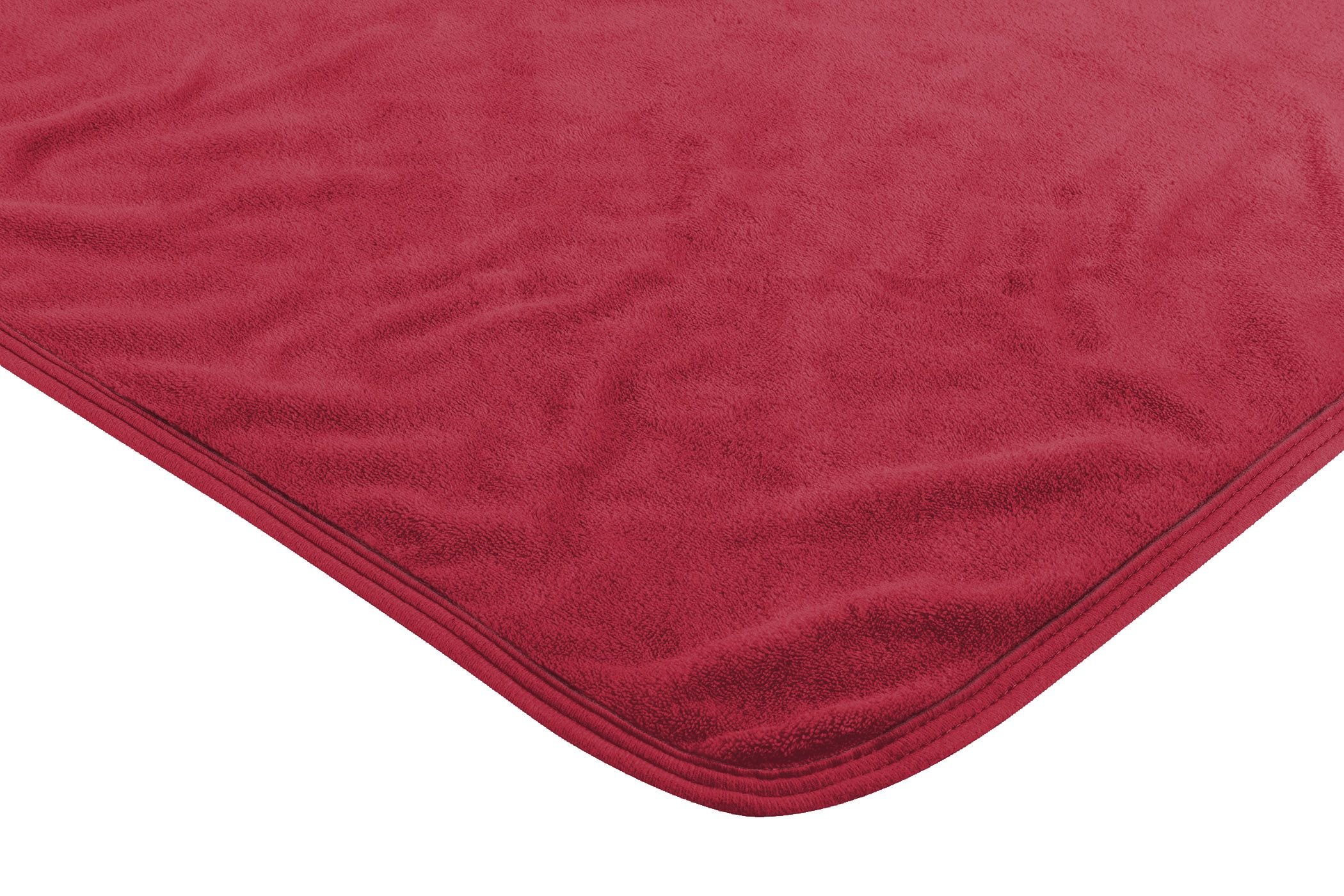 Soft and warm micro raschel fabric; decorative binding around all edges