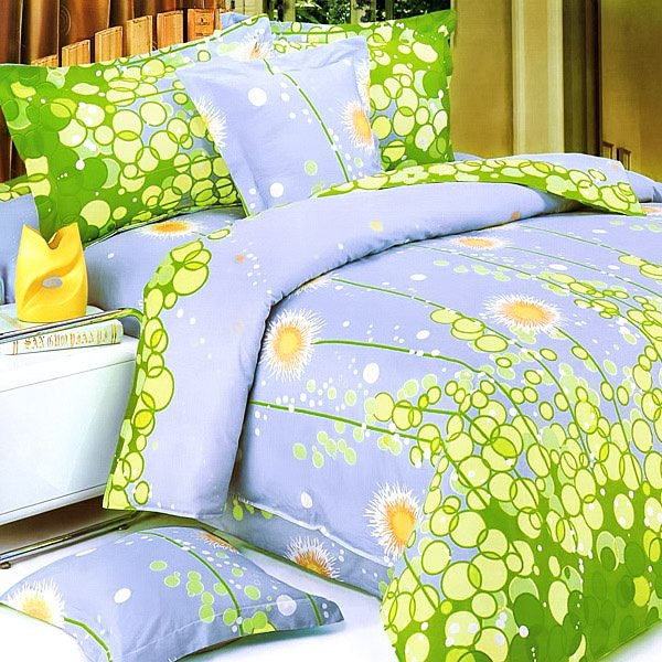 Three-piece set for Twin size (consisting of a pillow sham, a duvet cover & a comforter). Four-piece set for Full, Queen and King Size (consisting of two pillow shams, a duvet cover & a comforter). Twin (Duvet cover and Comforter : 67 x 87 inches; Pillow sham : 20 x 30 inches); Full (Duvet cover and Comforter : 76 x 87 inches; Pillow sham : 20 x 30 inches); Queen (Duvet cover and Comforter : 87 x 90 inches; Pillow sham : 20 x 30 inches); King (Duvet cover and Comforter : 104 x 92 inches; Pillow sham : 20 x 32 inches);Duvet covers are economical option to change the look and feel of your bed room without having to completely redecorate. Using duvet covers means not to invest a lot of money to do some changing in bedrooms. Duvet covers can be washed much more often than can your quilted comforter. Too-frequent washing (even dry cleaning) can compromise your comforter's down fill. However, a cotton duvet cover can be laundered along with the sheets and pillowcases. This keeps the down comforter fresh as well. If you have ever priced dry cleaning for a fine comforter, you understand why cleaning it less often is a huge advantage! With a zipper on one end and twill ties at each inside corner of the duvet cover for you to tie to corresponding embroidered eyelet loop at corner of the comforter, so the comforter can be more securely tied to a duvet cover to keep it from shifting inside its cover while you sleep. Complete any bedroom decor with this stylish duvet cover set from Blancho Bedding. Queen size, consisting of two pillow shams, a duvet cover & a down-alternative comforter.Queen size comforter measures 87 by 90 inches with 54 oz hypo-allergenic breathable filling.This combo combines a duvet cover set with fashionable designs and a down-alternative comforter.A great way to freshen up any decor; Shrinkproof, anti-pilling and fading proof processes.Environment-friendly dyes; Fine and concentrated stitches; Machine washable and dryable.